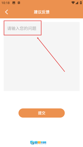 3、进入反馈页面后,点击输入框并填写相关内容,完成建议反馈的信息编辑工作。