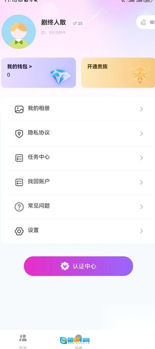 3、系统快速在线为你注册,让你快速进入交友中心。