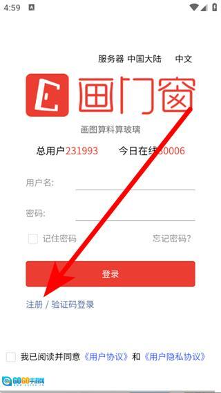 2、在登录页面,点击“注册验证码登录”选项,即可进入注册登录页面。
