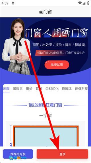 1、打开画门窗,点击登录按钮,进入登录页面。