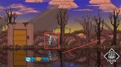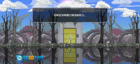 1、操控角色向右移动,探索枯树周边区域,查找可互动的机关或进入门内的线索,推动游戏进程。