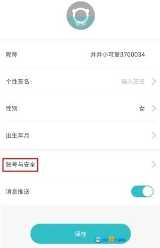 2、在个人信息页面中点击账号与安全按钮;