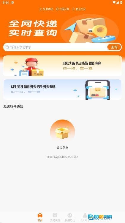 1、可在首页展示的搜索框中输入快递单号进行查询。