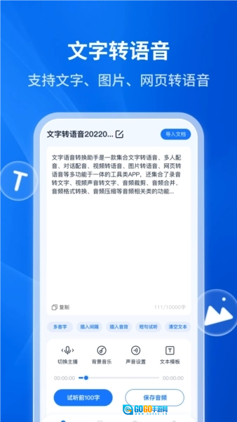 -智能语音合成:输入文字一键转换为语音。