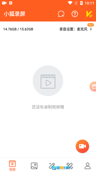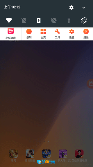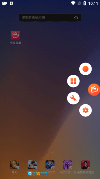 3、把小狐录屏软件切换到后台运行后,手机桌面上就会显示出录屏浮窗