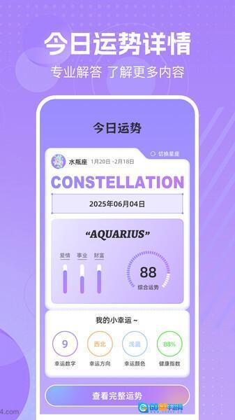 3、多维度运势解析:覆盖爱情、事业、财富、健康、学业等多个层面的运势剖析,用户能够全方位知晓自身在不同生活领域的运势态势。