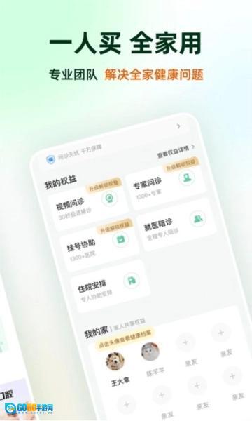 专业家庭医生服务:全家人可共享医疗资源,全年能享受无限次线上咨询与诊疗服务。