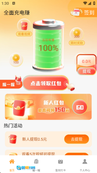 2. 在首页即可看到充电领红包功能;
