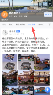 2、在建房案例页面选择风格分类、浏览相关内容。