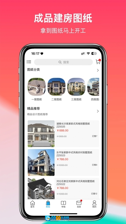 2、包含图纸商城活动,支持浏览、分享、点赞等互动操作,覆盖建房案例图纸以及互动类内容维度。