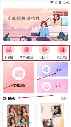 1、启动MIX拼图应用,在主界面中,你可以找到拼长图、网页截图拼接、台词拼接等多种功能选项,同时还有各类热门模板可供挑选。你只需点击任意一种拼图模式,就能开启拼图创作。