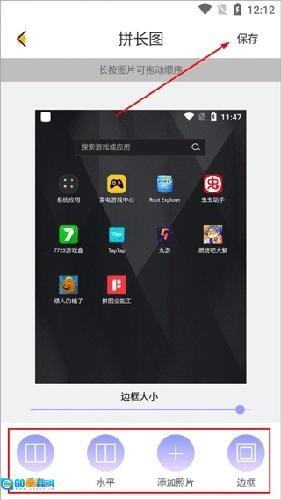 3、接下来可选择拼图模式(如垂直、水平、边框等),选好后点击右上角的保存按钮即可。