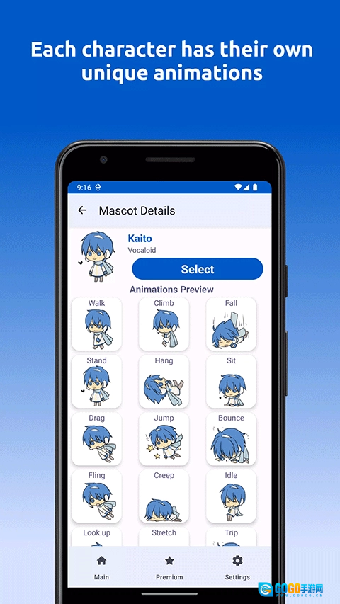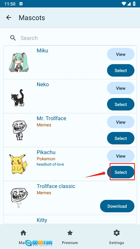 2、然后挑选一个自己喜欢的桌宠,并点击Select(Select按键只有桌宠后才会显示,如果没有显示Select按键,点击Download按键后就会显示啦)