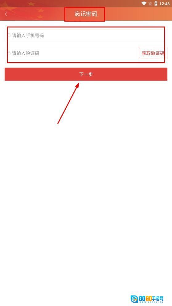 2、进入密码找回页面后,先输入手机号码,接着点击【获取验证码】按钮,在收到并输入验证码后,点击【下一步】,再按照页面提示完成密码重置操作。