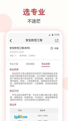 高考志愿是一个专门为高考学子量身定制的高考志愿填报指南,志愿填报信息服务平台,该平台的系统算法帮助高考学子解决高考志愿填报专业选择困难的问题,准确的高校分数线、名次线预测协助考生家长做出更加合理、有效的志愿选择!升学e网通强大的高考志愿模拟填报功能,准确预测考生拟填报院校的录取概率,并为考生提供更适合的报考方案。同时志愿专家还为用户提供了便捷的专业大全查询服务和高校信息查询服务,用户可以便捷的查看各高校的基本资讯信息。志愿填报,填报完美志愿。