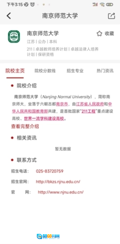 1、进入企鹅高考志愿主页后,点击上方查询学校,如:南京师范大学