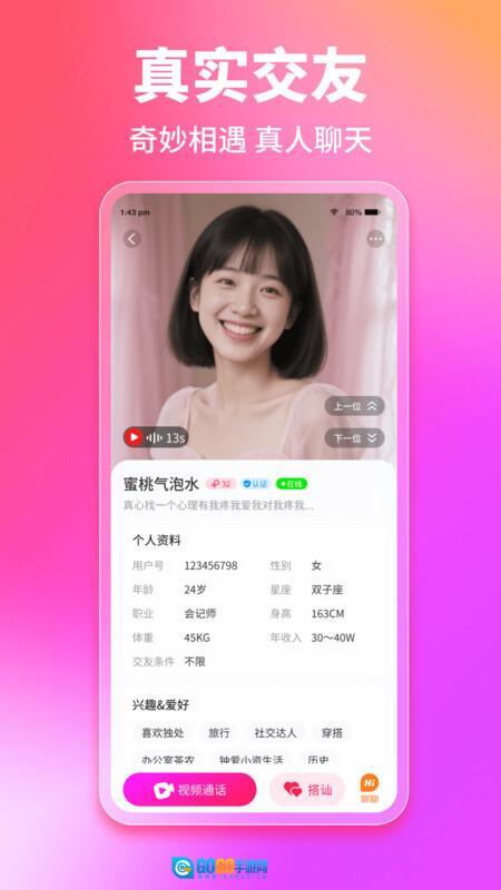 2、实施真实用户认证机制,通过多重身份验证手段保障交友信息的真实性,致力于构建一个值得信赖的社交平台。