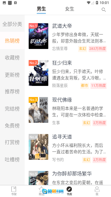 2、找书的途径较为丰富,大家可以依据自己偏好的题材进行分类查找,平台还提供榜单推荐,助力安全选书。