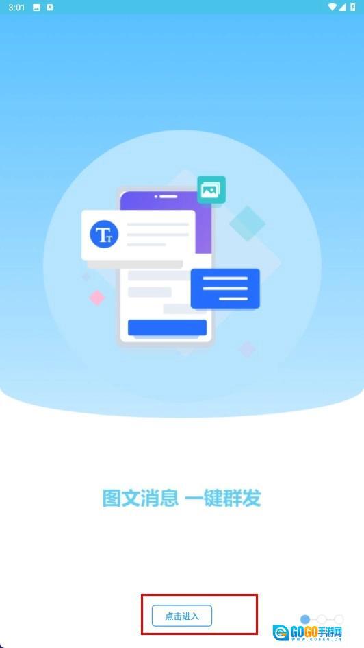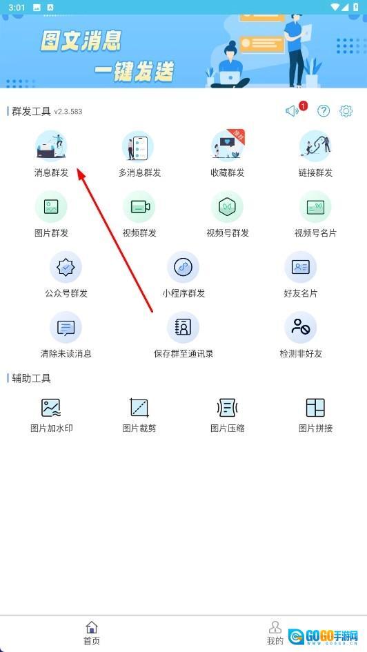 2、在主界面,点击【消息群发】功能图标,即可进入消息群发的设置页面。
