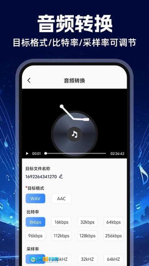 4. 参数调整:支持用户对音频的比特率与采样率进行调节,从而适配多样化的使用需求。
