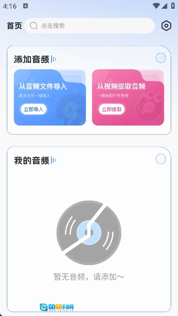 3. 进入“音频提取”界面后,可导入相应的视频片段,软件会自动完成音频提取操作。