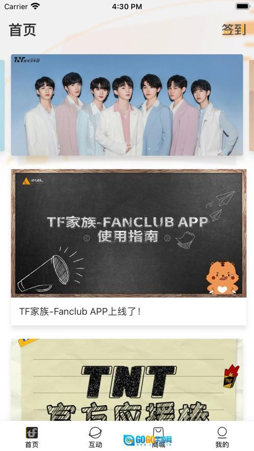 tf家族-fanclub是北京时代峰峻文化艺术发展有限公司为tf家族粉丝量身打造的综合服务平台,致力于为粉丝提供全面且便捷的追星体验。平台整合了商城、会员动态、福利、粉丝互动等多个功能板块,方便粉丝实时获取tf家族的最新资讯、活动安排以及明星专属福利。借助这个平台,粉丝们能够及时了解男团的演出信息,便捷购买演唱会门票、领取应援棒,为支持的明星助力打call。