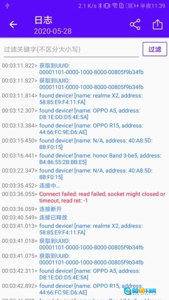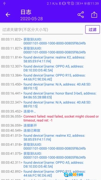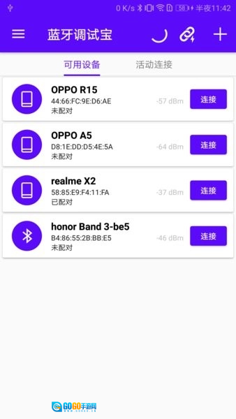 1.支持循环搜索功能设置,可自动确认UUID,能实时展示搜索到的设备信息,包括信号强度、MAC地址、配对状态等。