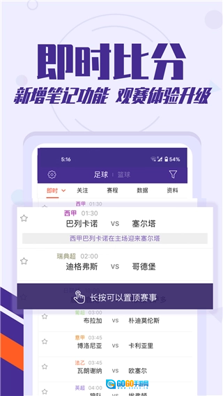 3. 赛事资料库:覆盖全球各级联赛的资料库、积分榜及比赛历史数据,可满足用户的多样化需求。