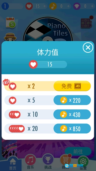 2、歌曲取得高分后将给予体力奖励:得分超100分奖励2点体力,超220分奖励5点体力,超430分奖励10点体力,超850分则奖励20点体力