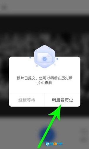 4、待系统提示“照片已提交”后,点击“稍后查看历史记录”,后续即可获取修复完成的照片。