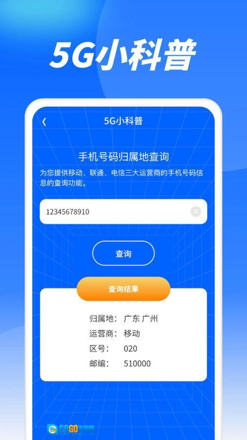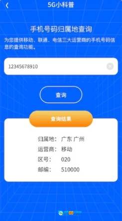 3、点击下方5G小科普,还能查询号码归属地。
