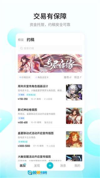 画加能为用户提供在线互动交流的途径,用户不仅可以欣赏大神画师的作品,还能向画师约稿,把自己的创意和灵感传达给对方,一起打造出独特的艺术作品。