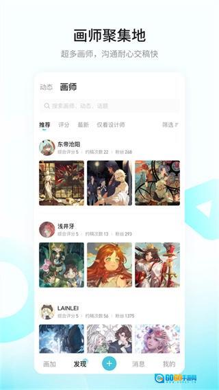 1、具备丰富的交流互动功能,能让插画师与绘画爱好者之间展开互动交流,彼此分享创作经验与技巧。