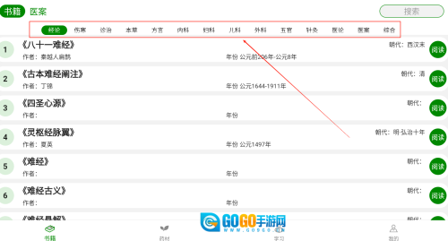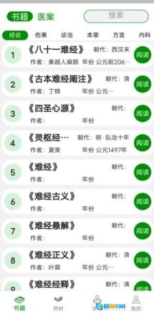 安装完成后进入主界面,就能浏览书籍、药材、方剂等各个模块,借助分类索引可以快速找到想要的内容。