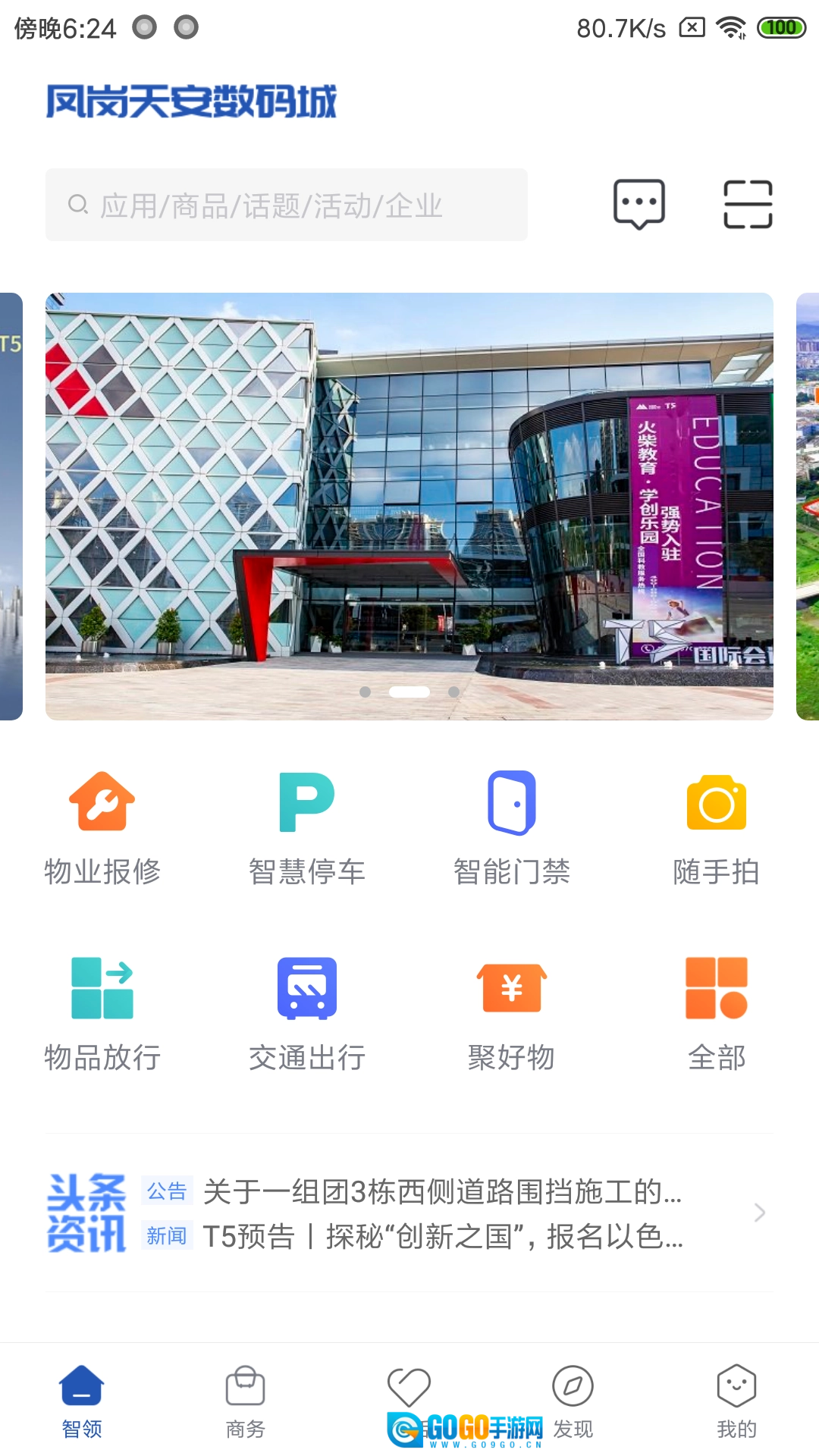 管家式服务:为企业与个人提供招商租赁、物业管理、安防门禁、智慧停车、园区服务、企业服务、在线缴费、日常消费、社交活动等服务内容。