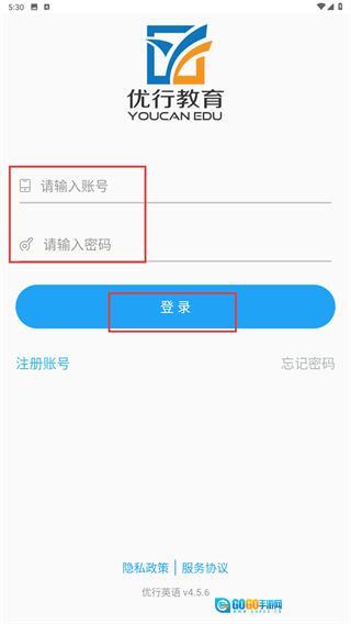 2、进入登录页面后,在【请输入账号】和【请输入密码】的输入框中填写对应信息,点击【登录】功能按钮即可完成登录操作;如果还未注册账号,可点击【注册账号】按钮进行注册。