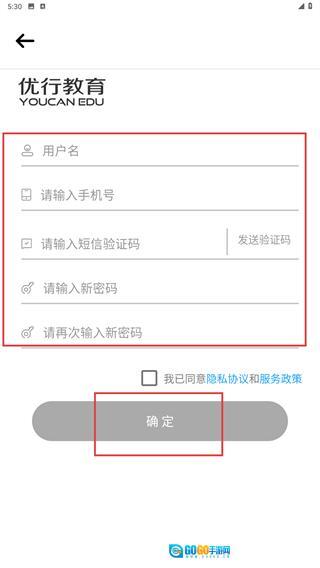 3、进入注册页面后,按顺序填写用户名与手机号,点击【发送验证码】获取并填写验证码,接着设置新密码并再次确认,勾选相关协议后点击【确定】功能按钮,即可完成注册流程。