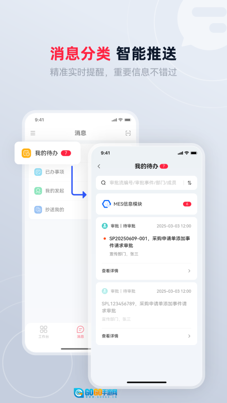 1、具备消息分类功能,可智能推送重要消息,助力用户高效处理工作事务,消息分类维度更精细。