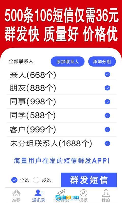 群发短信作为一款实用的短信批量发送工具,能让用户借助软件向多位联系人同步传递信息,从而显著提高信息传播的效率。此外,它还配备了多样的短信模板,涵盖营销推广、节日祝福、活动邀请等不同场景,用户可依据自身需求挑选并调整模板内容,既能减少编辑短信所花费的时间,又能让软件使用体验更上一层楼。