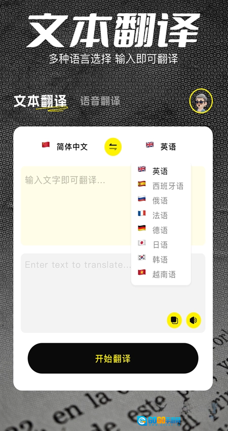 进入主页后,找到文本翻译页面,在其中输入待翻译的内容,最后点击“开始翻译”按钮就可以了。