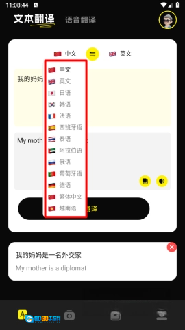 也可以点击上方的语言选项,便捷切换想要的语言来完成翻译。