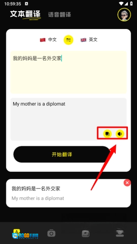 翻译结束后,你可以选择一键复制文本内容,也可以点击播放音频,这样能帮助你学习标准的发音。