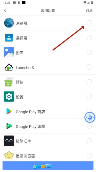 在批量卸载选择页面,勾选【目标应用】。
