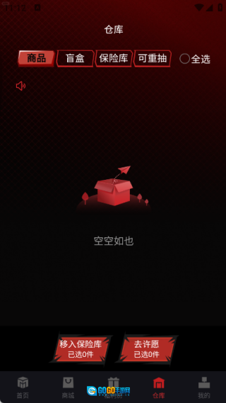 4、在仓库页面能够查看各类商品的信息,并且可以将商品移入保险库。