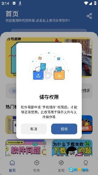 1. 打开本页面后,若弹出“储存权限”提示框,若希望软件能使用手机储存权限来保存和处理文件,可点击“授权”;若不愿授权,则点击“取消”。