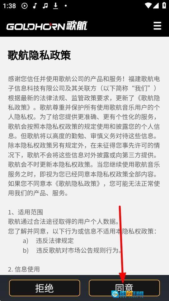 首次使用歌航应用时,需阅读《歌航隐私政策》并点击“同意”,方可正常使用产品服务。