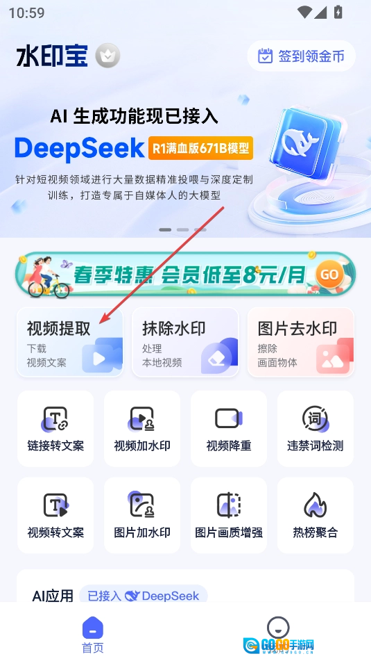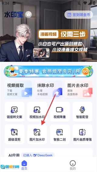 水印宝作为一款视频创作类工具,具备去除视频与图片水印的功能,支持批量操作且处理后无痕迹残留;同时还可添加个性化水印,并提供多样的视频图片编辑工具。该软件已接入DeepSeek大模型,用户通过签到获取金币即可免费使用大部分功能,能够满足文案写作、视频提取等需求。其操作界面简单直观,无需专业知识也能轻松上手,助力用户实现高效创作。