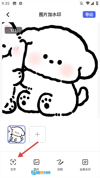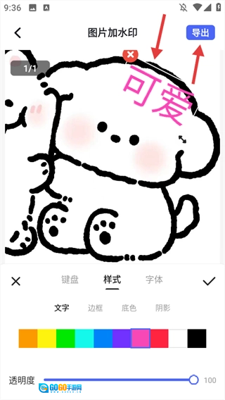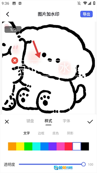 调整好文字水印的位置后,点击页面右上角的【导出】按钮,即可完成图片添加水印的操作。