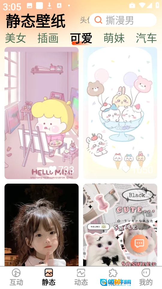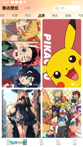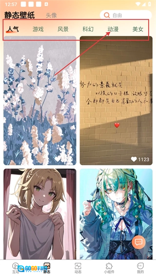 在壁纸首页,点击底部的【静态】选项,即可进入静态壁纸板块。