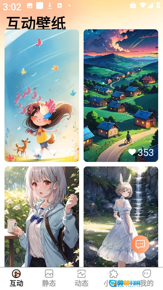 收录大量精选壁纸资源,涵盖自然风光、动漫等多种类型,包含动态、互动形式,壁纸均免费使用,无付费门槛。
